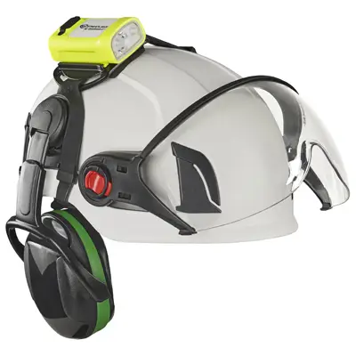 de viseiras, protetores auriculares e outros equipamentos essenciais. Dois LEDs